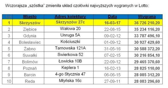 Zdjęcie: Rekordowa szóstka w LOTTO padła w Skrzyszowie