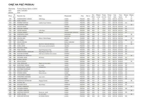 Chęć na pięć. 19.03.2017 - wyniki biegu OPEN