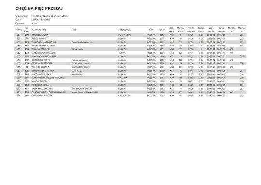 Chęć na pięć. 19.03.2017 - wyniki biegu OPEN