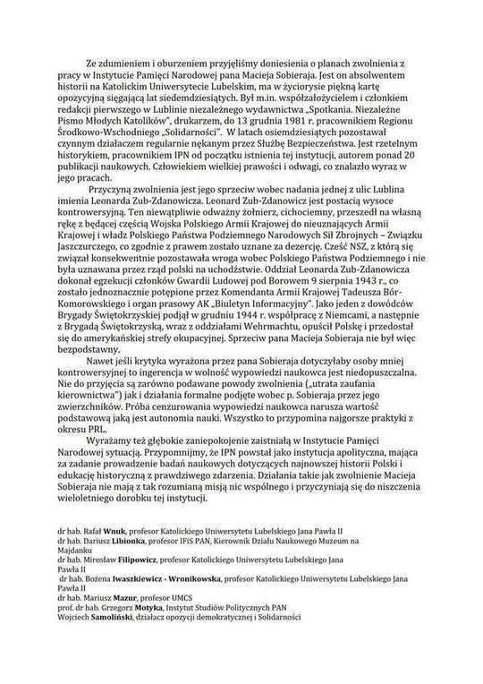 List w obronie Macieja Sobieraja, historyka IPN