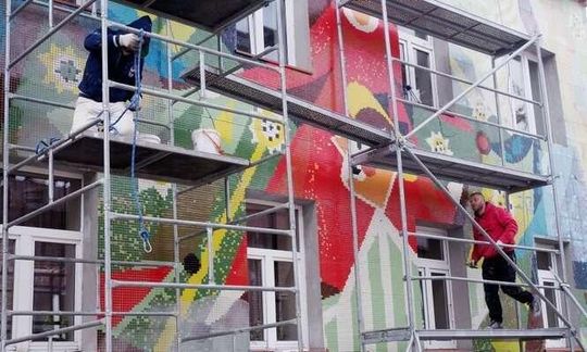 Zdjęcie: Mozaika na kamienicy przy ul. Biłgorajskiej w Lubli...
